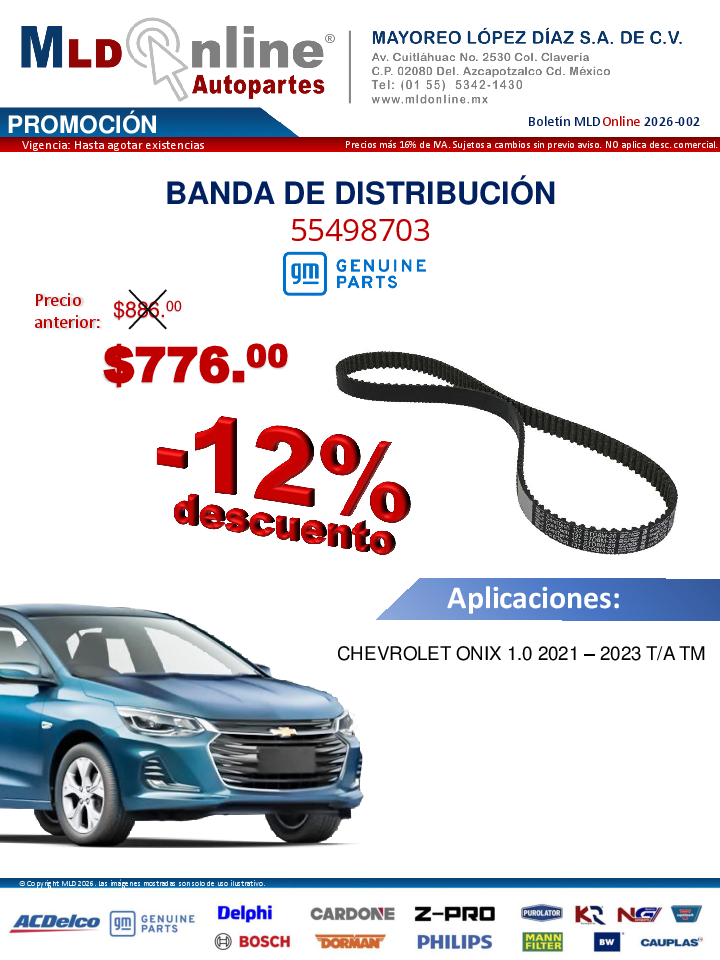 Para la aceptación de la garantía de este producto se requiere previo a la compra la validación correcta de la aplicación mediante numero de serie / vin del vehículo y ser instalado en un concesionario GM autorizado, descargar PDF para ver mas detalles.